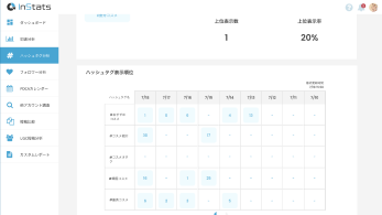 投稿毎の細かなデータ可視化に加え、設定したハッシュタグ毎に表示順位をトラッキングし、アカウントレベルに合わせた適切なハッシュタグの選定が可能になります。